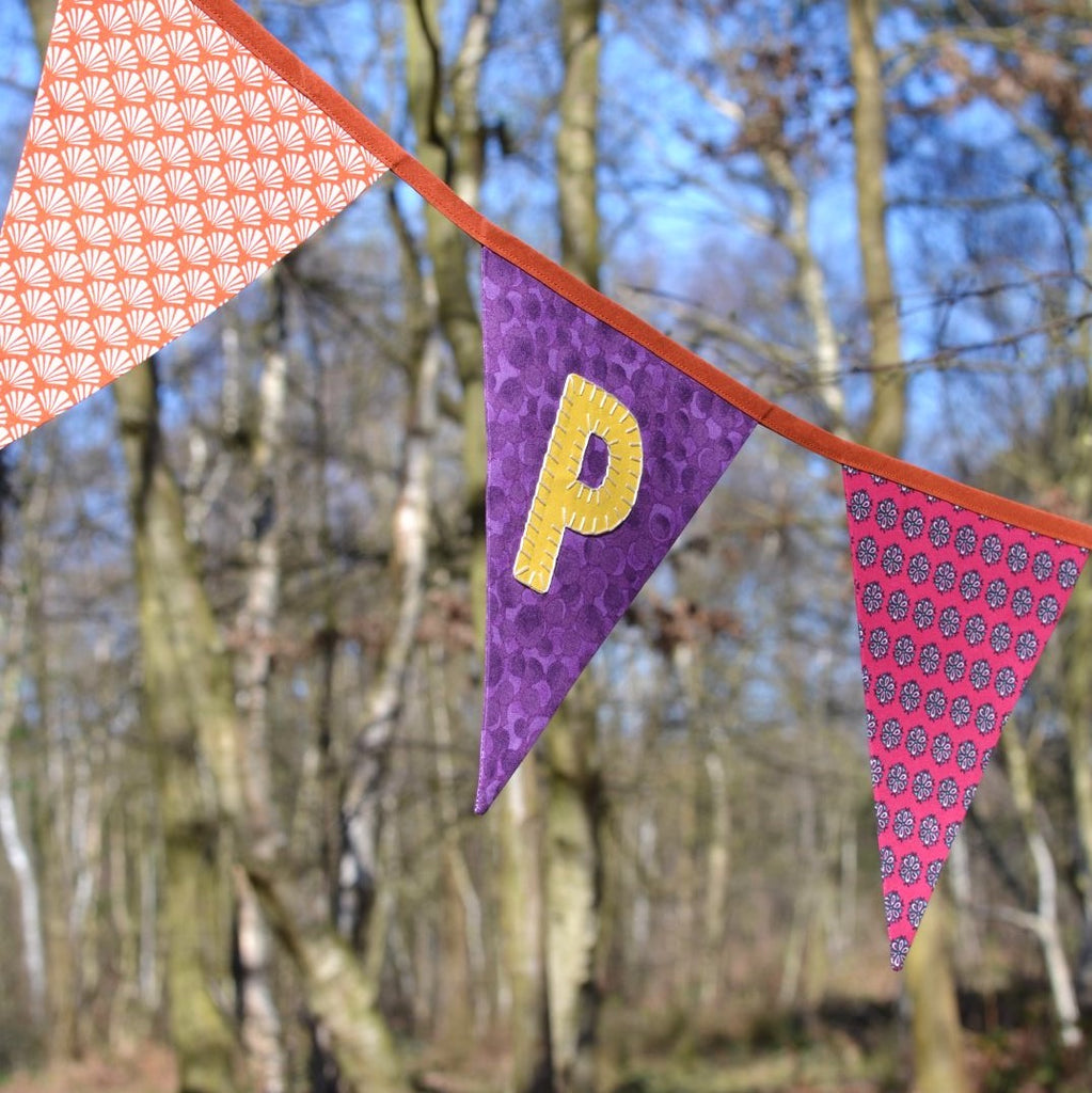 This product is handmade to order by yours truly! Simply enter your chosen initials and colours in the boxes provided. I recommend choosing up to 5 colours, or ask for different hues of the same colour if you prefer it more ‘matchy’ (I’m making that a word). Please specify if you would like the flags or embroidered initials to be particular colours, otherwise you give me the trust (I love the trust!).